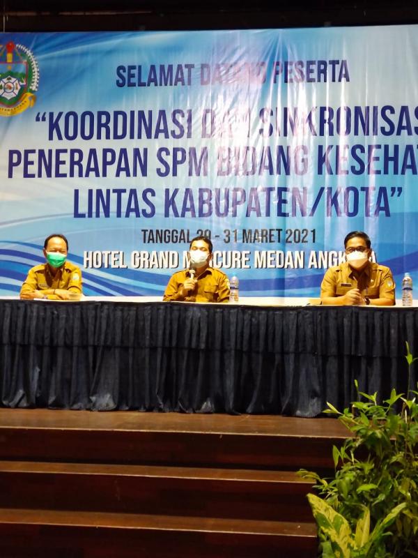 Pertemuan Koordinasi dan Sinkronisasi Penerapan Standar Pelayanan Minimal (SPM) di bidang kesehatan lintas kabupaten/kota dilaksanakan pada tanggal 29-31 maret 2021 di hotel Grand Mercure Medan Angkasa, Jalan Sutomo No.1 Medan.