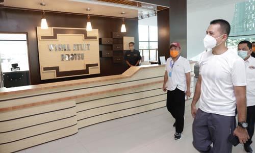 Wakil Gubernur (Wagub) Sumatera Utara (Sumut) Musa Rajekshah meninjau kesiapan Wisma Atlet Pemerintah Provinsi (Pemprov) Sumut di Jalan Willem Iskandar, Deliserdang yang akan digunakan untuk penginapan tenaga medis yang menangani Corona Virus Disease (Covid-19). Selama