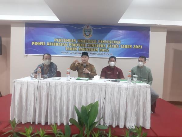 Dinas Kesehatan Provinsi Sumatera Utara menyelenggarakan kegiatan Pertemuan Finalisasi Penyusunan Profil Kesehatan Provinsi Sumatera Utara Tahun 2021 bertempat di Hotel Grand Antares Jalan Sisingamangaraja Medan tanggal 23- 25 Mei 2022. Pertemuan penyusunan profil kesehatan ini