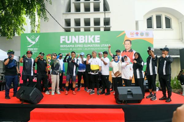 MEDAN - Panitia Besar (PB) Pekan Olahraga Nasional (PON) XXI Wilayah Sumatera Utara (Sumut) bersama Dewan Perwakilan Rakyat Daerah (DPRD) Sumut menggelar Funbike untuk menyosialisasikan Pekan Olahraga Nasional (PON) XXI Aceh-Sumut pada masyarakat.