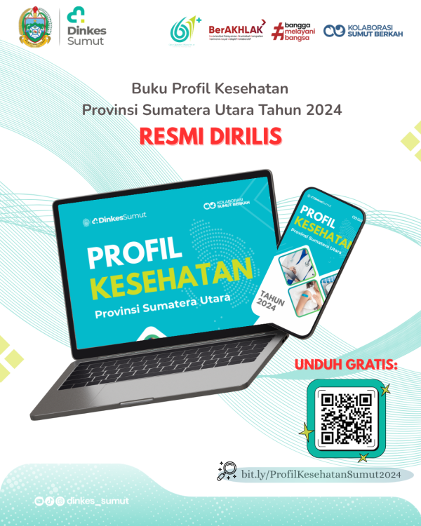 Profil Kesehatan Provinsi Sumatera Utara Tahun 2024 telah resmi dirilis. Buku ini dapat diakses secara digital oleh seluruh pemangku kepentingan serta masyarakat umum melalui website Dinkes Sumut (bit.ly/ProfilKesehatanSumut2024)