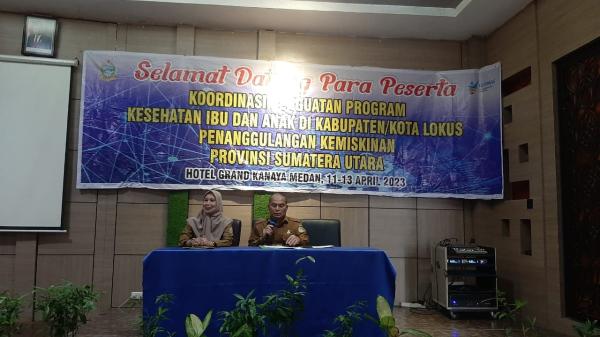 MEDAN: Seksi Kesehatan Keluarga dan Gizi, Dinas Kesehatan Provinsi Sumatera Utara menggelar Koordinasi Penguatan Program Kesehatan Ibu dan Anak (KIA) di Kab/Kota Lokus Penanggulangan Kemiskinan Provinsi Sumatera Utara, di Grand Kanaya Hotel, Jalan Darussalam No.12, Medan, Selasa Hingga Kamis (11-13/ 04/2023).