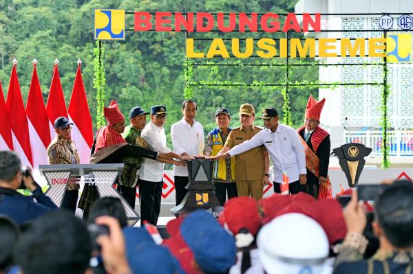 Deli Serdang. Penjabat (Pj) Gubernur Sumatera Utara (Sumut) Agus Fatoni mendampingi Presiden Republik Indonesia Joko Widodo meresmikan Bendungan Lau Simeme yang berlokasi di Kecamatan Sibiru-biru, Deli Serdang, Sumatera Utara, Rabu (16/10/2024).