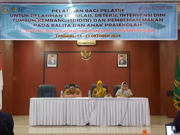 Dinas Kesehatan Provinsi Sumatera Utara menggelar Pelatihan Bagi Pelatih untuk Pelatihan Stimulasi, Deteksi, Intervensi Dini Tumbuh Kembang (SDIDTK) dan Pemberian Makan Pada Balita dan Anak Prasekolah di UPTD Pelatihan Kesehatan Dinas Kesehatan Provinsi Sumatera Utara