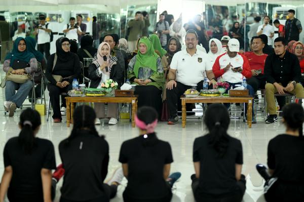 DELISERDANG - Penjabat (Pj) Ketua Tim Penggerak Pemberdayaan Kesejahteraan Keluarga (TP PKK) Sumatera Utara (Sumut) Tyas Fatoni mendukung penuh Tim Senam Kreasi Sumut mereka akan berlomba pada Kejuaraan Nasional (Kejurnas) Persatuan Wanita Olahraga Seluruh Indonesia