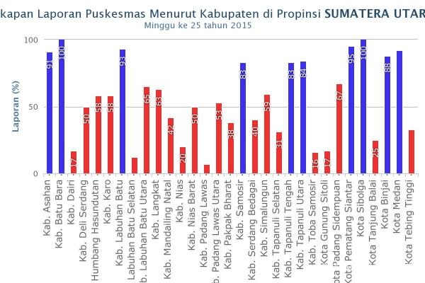 Provinsi Sumatera Utara terdiri dari 33 kabupaten/ kota, 425 kecamatan dan ada 572 puskesmas yang terdaftar untuk sistem kewaspadaan dini dan respon berbasis web.
