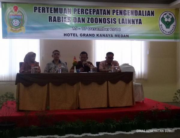Dalam rangka eliminasi Rabies di Indonesia pada tahun 2020, maka Dinas Kesehatan Provinsi Sumatera Utara mengadakan Pertemuan Percepatan Pengendalian Rabies dan Zoonosis Lainnya pada tanggal 15-17 Desember 2016 di Hotel Grand Kanaya, Medan. Pertemuan tersebut