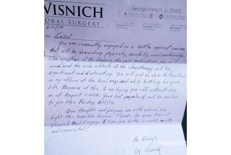 Pennsylvania, Bukannya mendapat simpati, pegawai ini malah dipecat dari pekerjaannya karena didiagnosis kanker. Sang atasan beralasan kanker dan kemoterapi yang akan dijalani pegawainya itu nanti bisa mengganggu kompetensi si pegawai ketika bekerja.