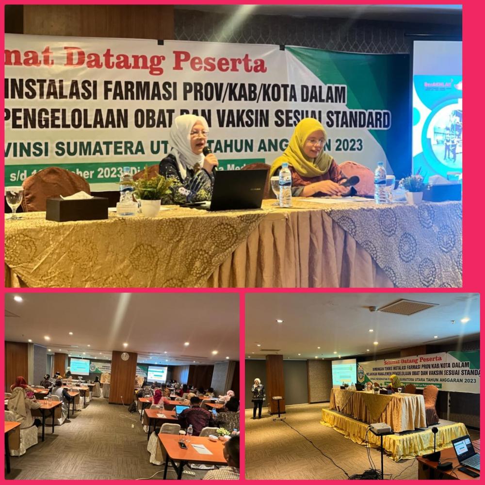 Narasumber dari Balai Besar Pengawas Obat dan Makanan ibu Dra. Gita Baringin, Apt, M.Si memaparkan materi tentang Pengawasan Instalasi Farmasi Kab/ Kota di Prov. Sumatera Utara