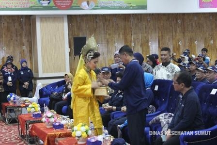 Kepala Dinkes Provsu (Drs.Agustama\, Apt\,M.Kes) menerima tanda ucapan selamat datang.