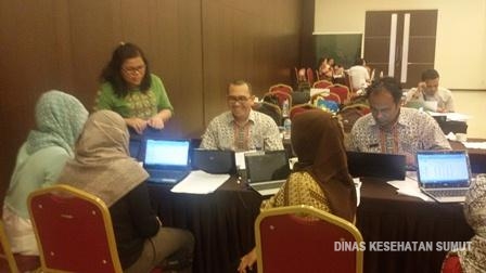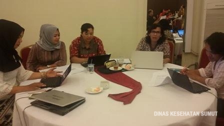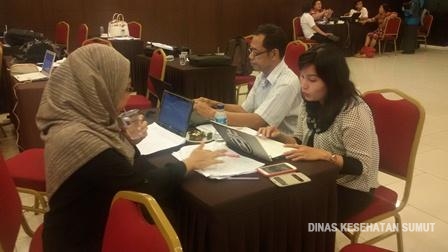 Peserta sedang desk data SDM Kesehatan dengan Penjab Data SDM Dinkes Provsu (Ibu Dameria Sinaga\, SKM