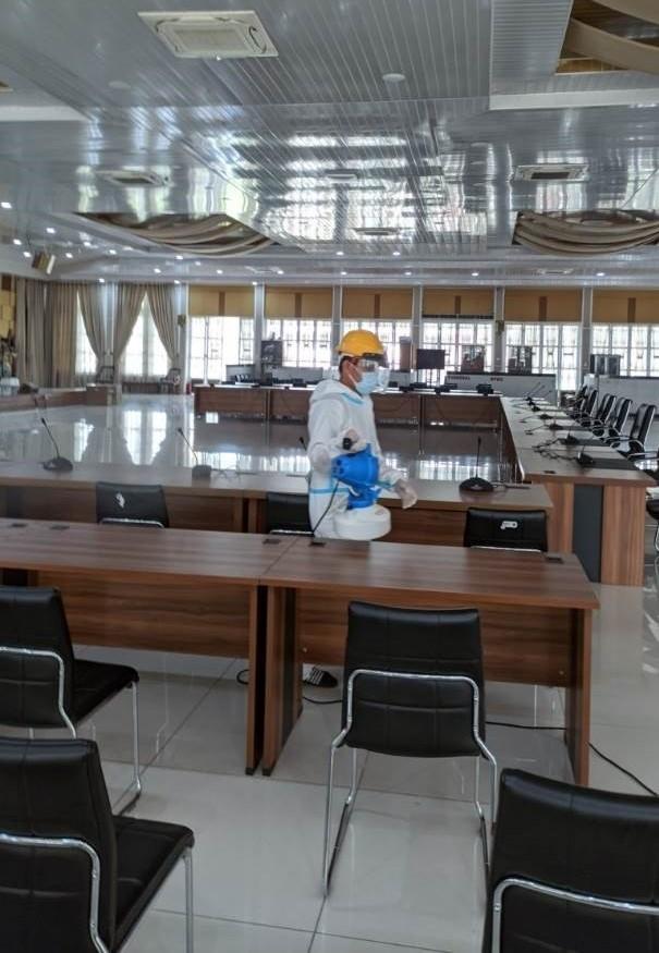 Kegiatan Penyemprotan Desinfektan di Posko Gugus Tugas Covid 19 Provsu (23 Februari 2021)