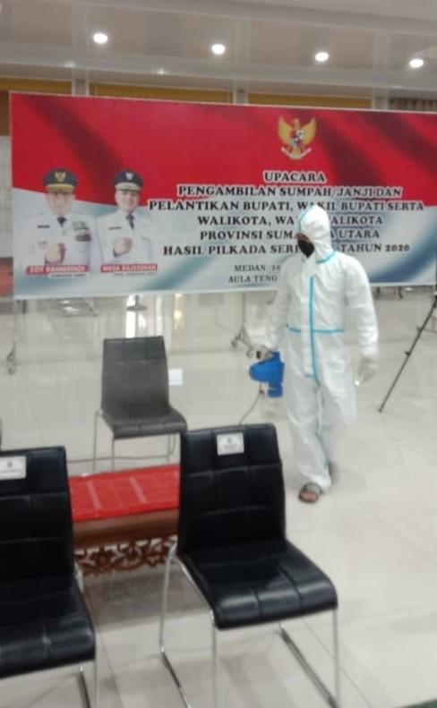 Kegiatan Penyemprotan Desinfektan di Posko Gugus Tugas Covid 19 Provsu (26 Februari 2021)