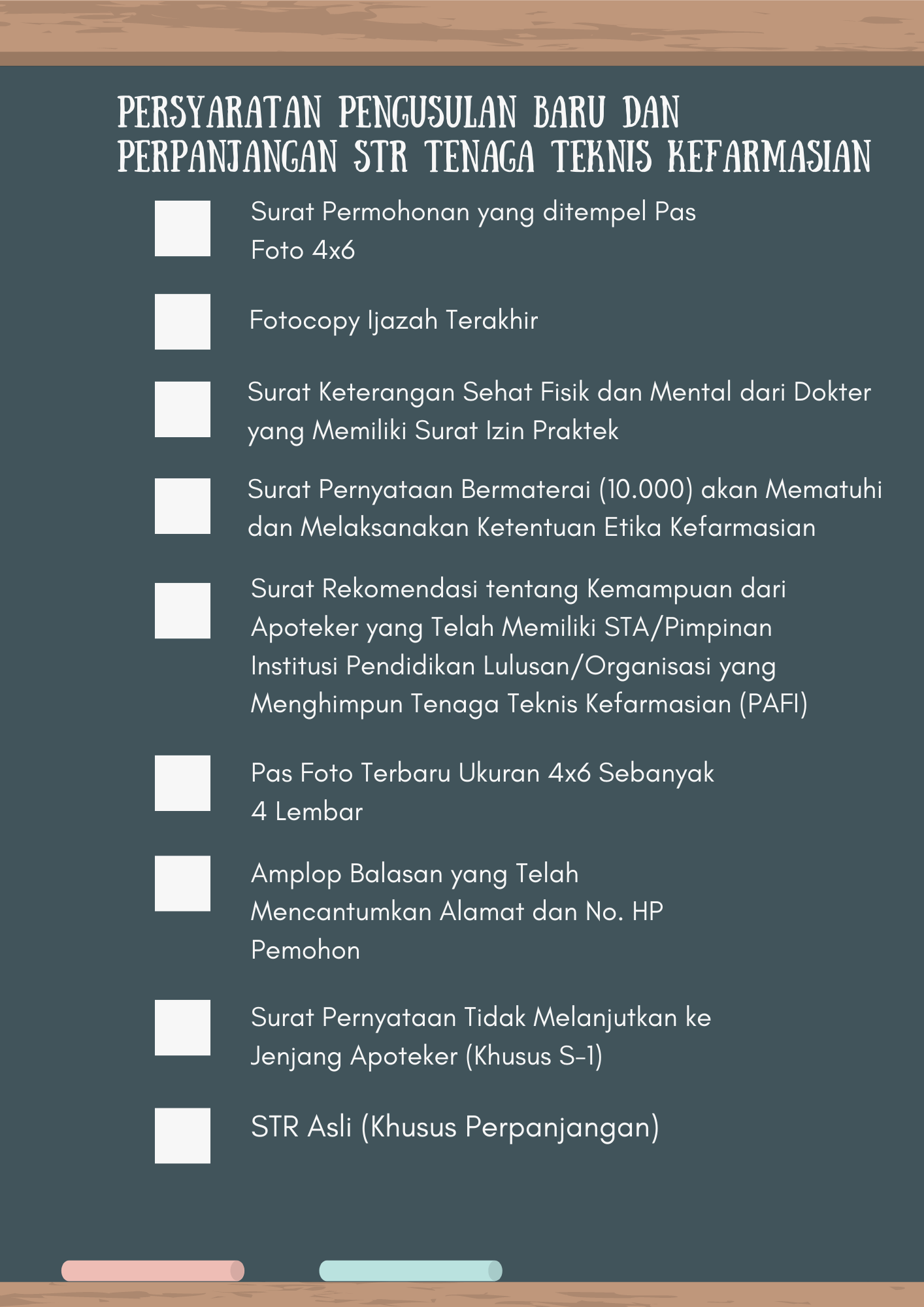 | 4 | Standar Pelayanan | Persyararan Baru dan Perpanjangan STR Tenaga Teknis Kefarmasian | Persyararan Baru dan Perpanjangan STR Tenaga Teknis Kefarmasian | 296.55 KB | image/png | Download | 10-09-2021 |